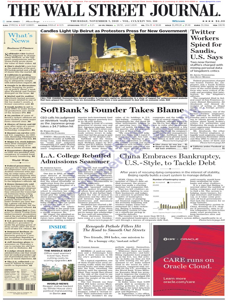 Wallstreetjournal 20191107 Thewallstreetjournal Pdf Soft Bank Group Medicare United States